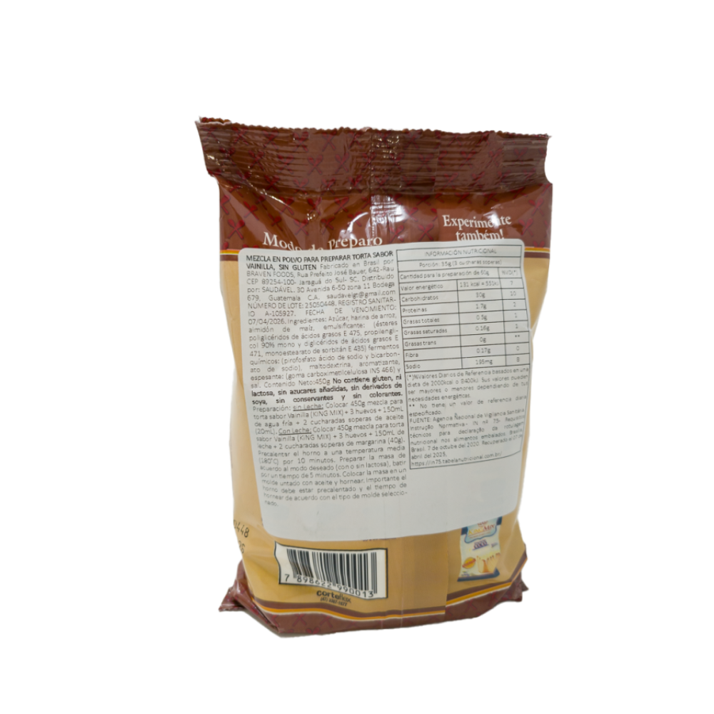 Disfruta de un pastel de vainilla clásico con una textura ligera y un sabor suave gracias a esta mezcla formulada a base de harina de arroz y almidón de maíz. Es una excelente opción para quienes buscan alternativas sin ingredientes con gluten, manteniendo la calidad y el sabor tradicional de la repostería casera.